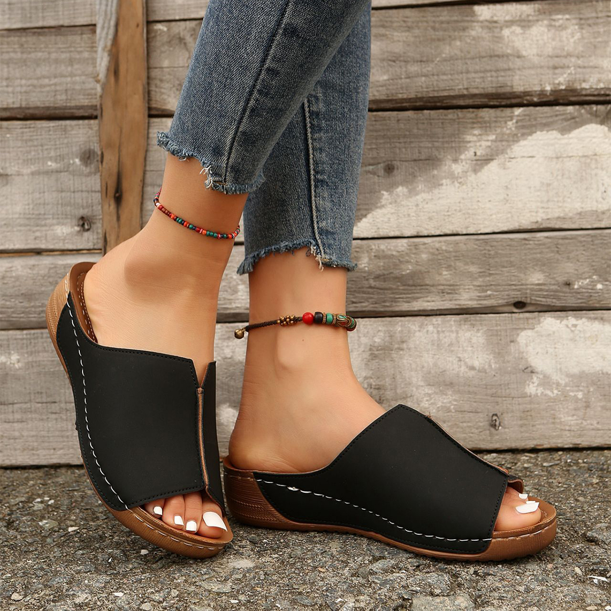 👡 Semelle épaisse compensée : effet rehausseur confortable